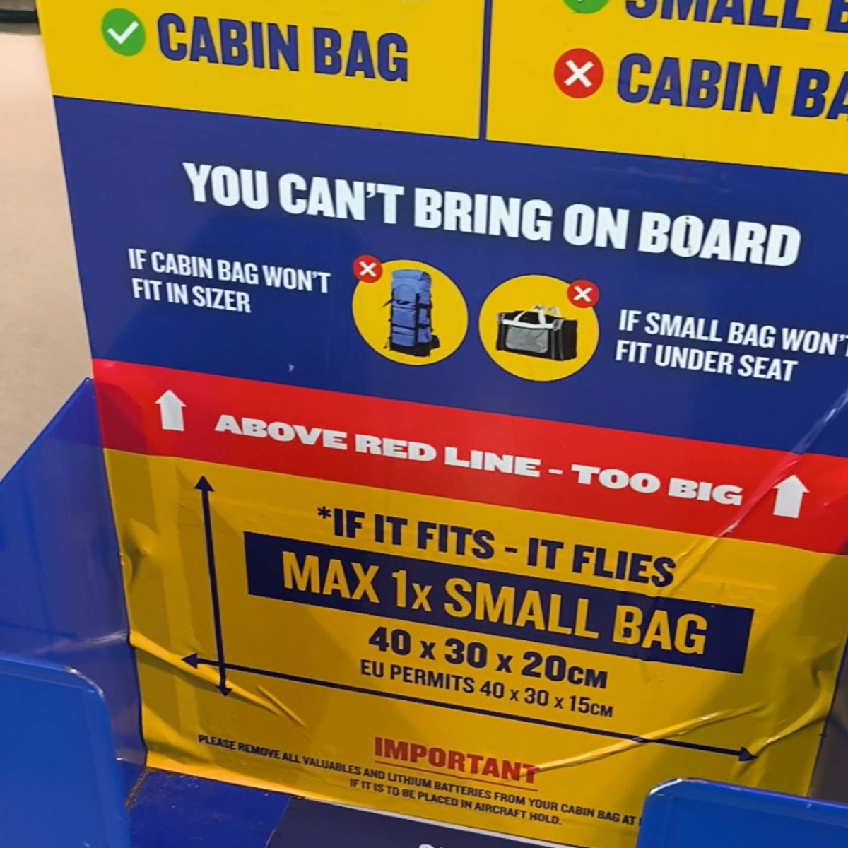 - Dimensions: Designed to fit the Ryanair bag sizer at the gate which is 40x30x20cm